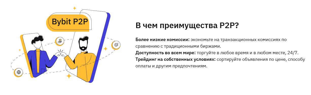 Подробный обзор P2P на примере криптобиржи Bybit смотрите в этой статье ⭣