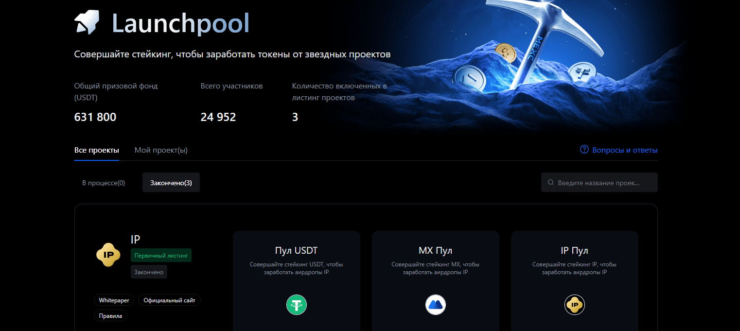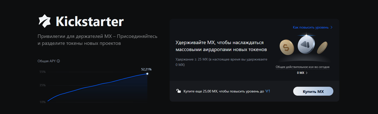 - Launchpad (Bybit) и MEXC Kickstarter — участие в раннем инвестировании новых проектов с возможностью получить токены по минимальной цене.