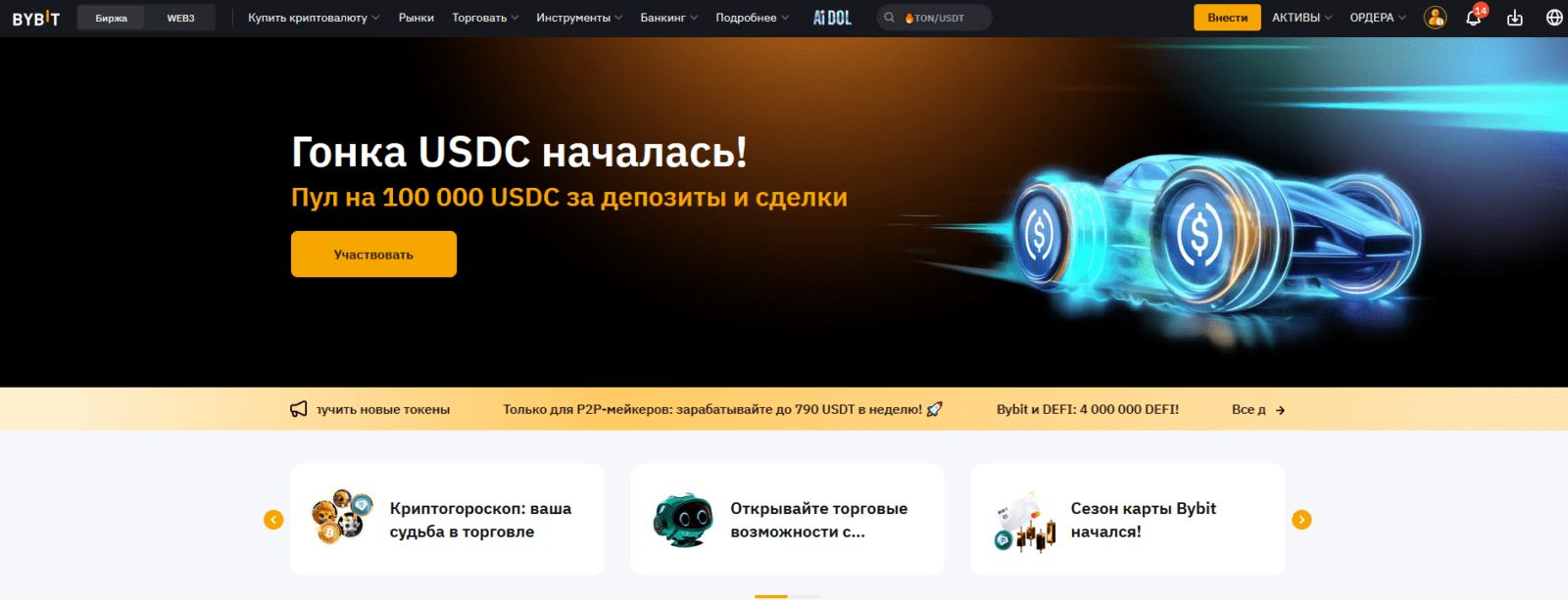 Bybit — самая популярная криптобиржа для фьючерсной торговли и не только. Платформа предлагает интуитивно понятный интерфейс, низкие комиссии и большой выбор инструментов для торговли. Здесь можно торговать деривативами, опционами и спотовыми активами. Bybit особенно ценят профессиональные трейдеры за высокую ликвидность и мощные инструменты анализа. Помимо классических торговых пар, биржа поддерживает инновационные продукты, такие как крипто-опционы и торговля с повышенным кредитным плечом.