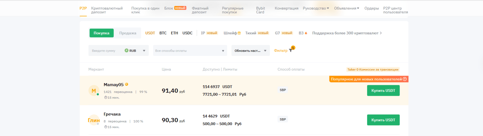 - Bybit предлагает более развитую систему с большим количеством продавцов и покупателей, что показывает высокую ликвидность и курсы сопоставимые с конкурентами.