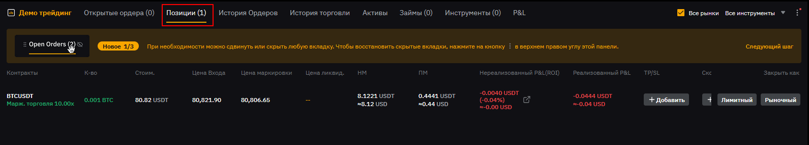 После настройки параметров нажмите кнопку «Купить лонг» для открытия длинной позиции или «Продать шорт» для открытия короткой. В случае лимитного ордера дожидайтесь достижения цены, которую вы установили.