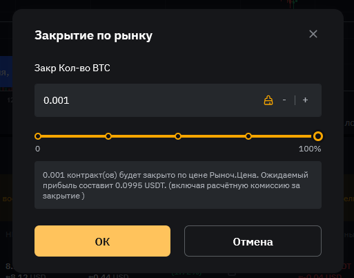 Когда вы решите закрыть позицию, перейдите в раздел «Мои позиции» и выберите нужную позицию. У вас есть два варианта для закрытия: