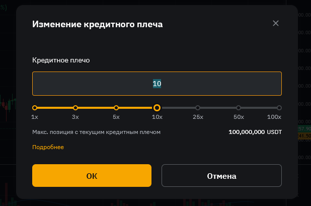 После выбора режима маржи укажите желаемый уровень плеча. Например, вы можете выбрать 10x или 20x, в зависимости от ваших предпочтений и уровня возможного риска. Помните, чем выше кредитное тем с большими рисками оно связано. Затем установите цену ордера — для лимитного ордера укажите цену. Наконец, укажите количество контрактов, которые вы хотите продать или купить.