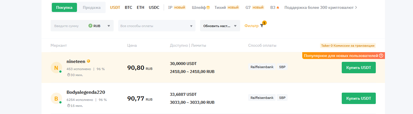 - Выберите нужную криптовалюту (например, USDT, BTC, ETH).