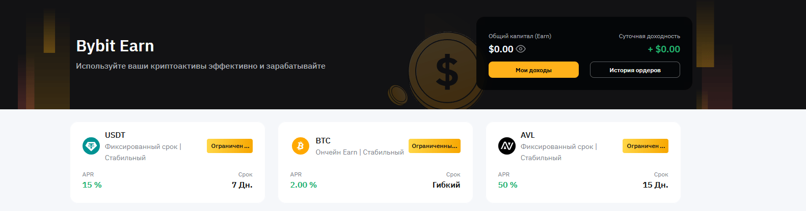Bybit Earn — это сервис пассивного дохода, который позволяет пользователям зарабатывать на своих цифровых активах без необходимости активной торговли. Платформа предлагает различные инвестиционные продукты с разной степенью риска и доходности. В зависимости от выбранного инструмента пользователи могут получать фиксированный или плавающий доход. Это отличный вариант для долгосрочных инвесторов, которые хотят приумножить свой капитал без активного участия в торговле.
