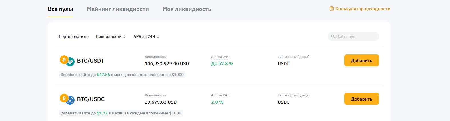 - Доходность: Может достигать 10% и более годовых, но зависит от объёма торгов в пуле.