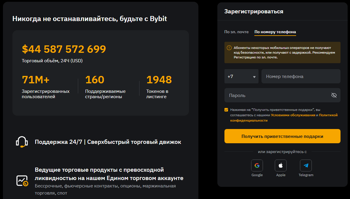 Перед тем, как зарегистрироваться на криптобирже Bybit лучше зайти на сайт, осмотреться, убедиться, что все удобно расположено и максимально понятно изложено.