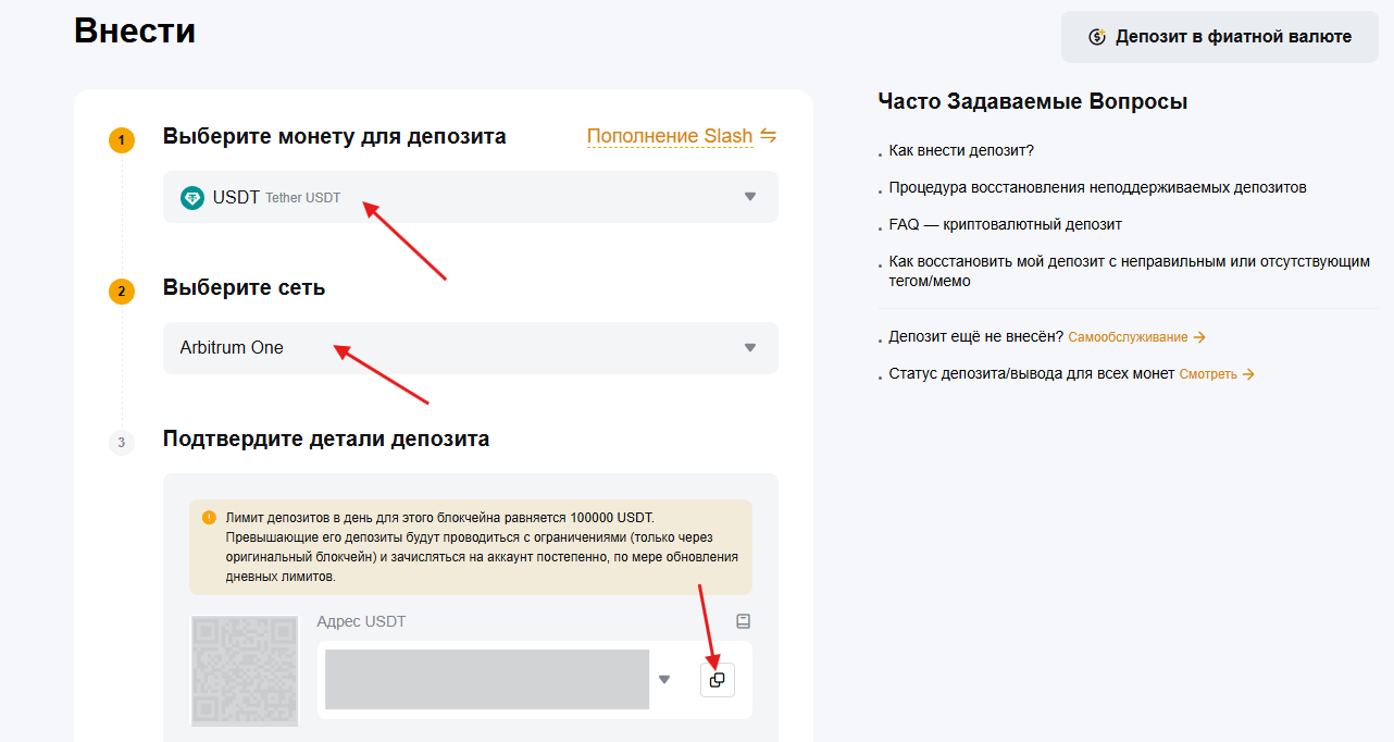 Скопируйте сгенерированный депозитный адрес. Отправьте криптовалюту с внешнего кошелька на указанный адрес. Дождитесь необходимого количества подтверждений блокчейна (обычно от 1 до 30 минут). Средства поступают на баланс спотового кошелька Bybit.