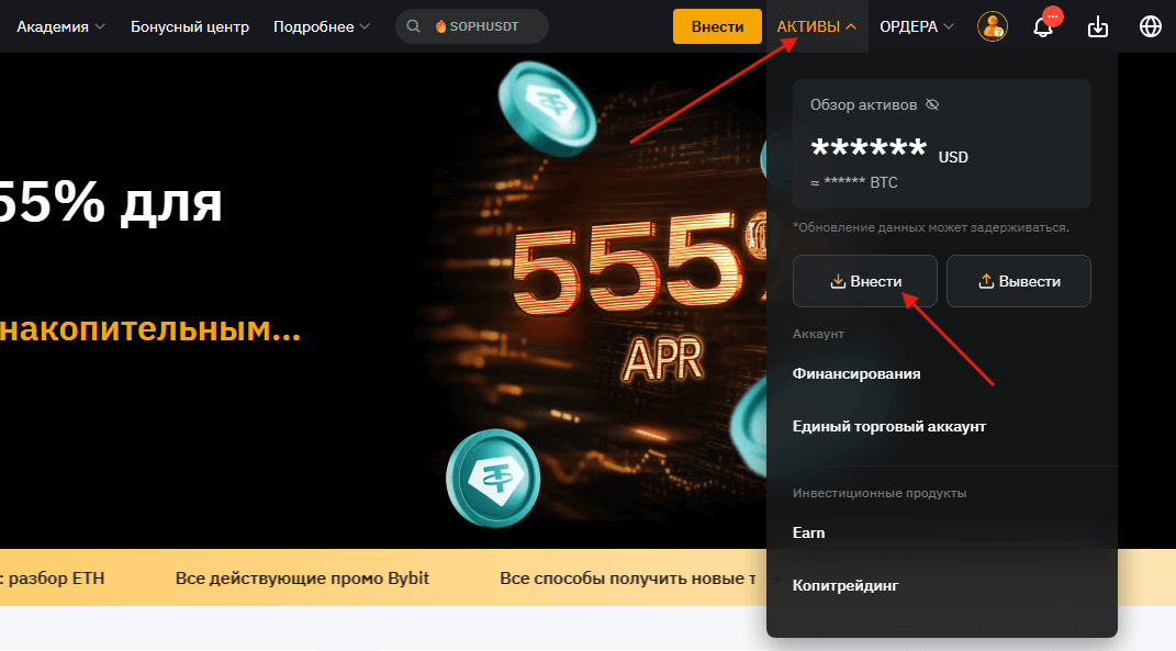 Но как ввести средства на биржу, чтобы купить криптовалюту на Байбит?