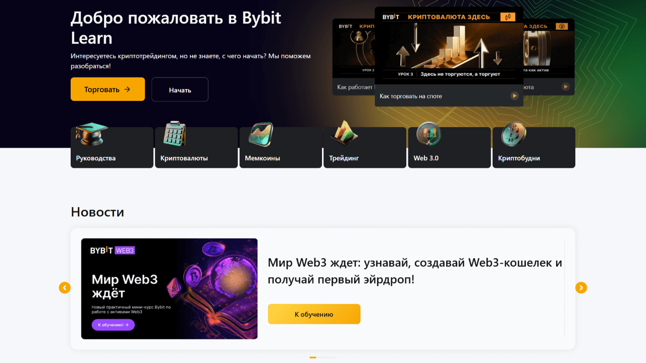 На первый взгляд, много сложного, однако в образовательном разделе вы найдете все про то, как пользоваться Bybit и еще много полезных советов.