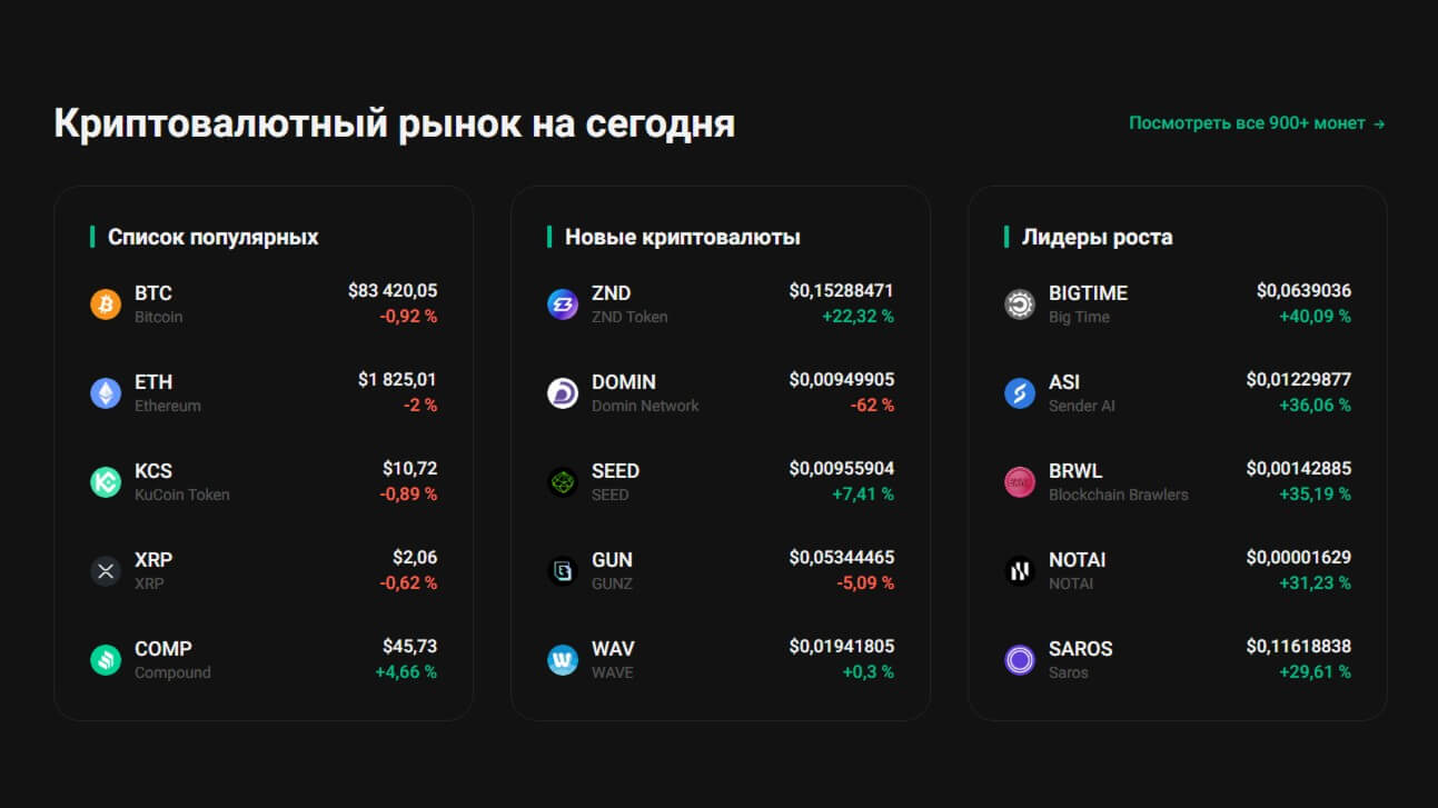 KuCoin остается в списке лидирующих криптовалютных бирж в 2025 году. Пользователей привлекает обширный инструментарий, невысокие комиссии, масштабный каталог активов и продукты для пассивного дохода. Надежный уровень безопасности, оперативная служба поддержки и постоянное внедрение инновационных решений делают KuCoin одной из самых востребованных площадок для работы с криптовалютами.