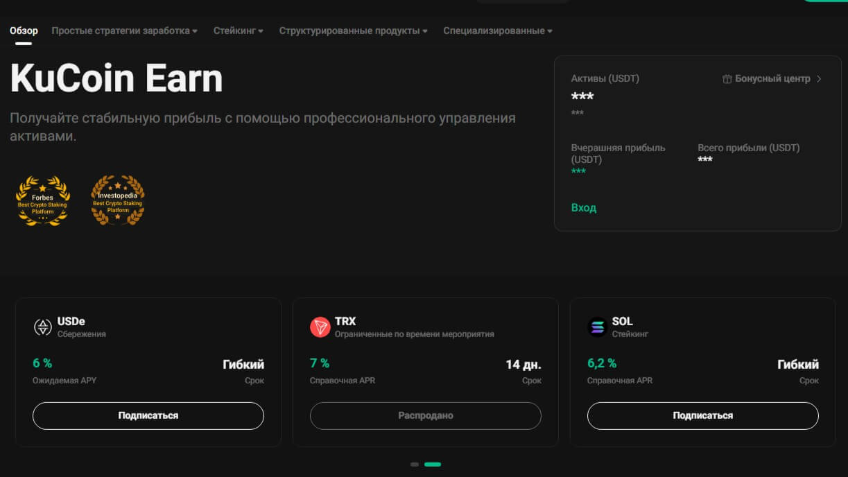 KuCoin представляет несколько инструментов для получения пассивного дохода. Одним из самых популярных является KuCoin Earn, позволяющий пользователям стейкать криптовалюту и получать проценты на свои активы. Доступны гибкие и фиксированные программы с разными уровнями доходности. Также пользователи могут участвовать в лендинге, предоставляя свои средства другим трейдерам под проценты. А еще, биржа предлагает пулы ликвидности и структурированные продукты, дающие возможность заработать даже на боковом движении рынка.