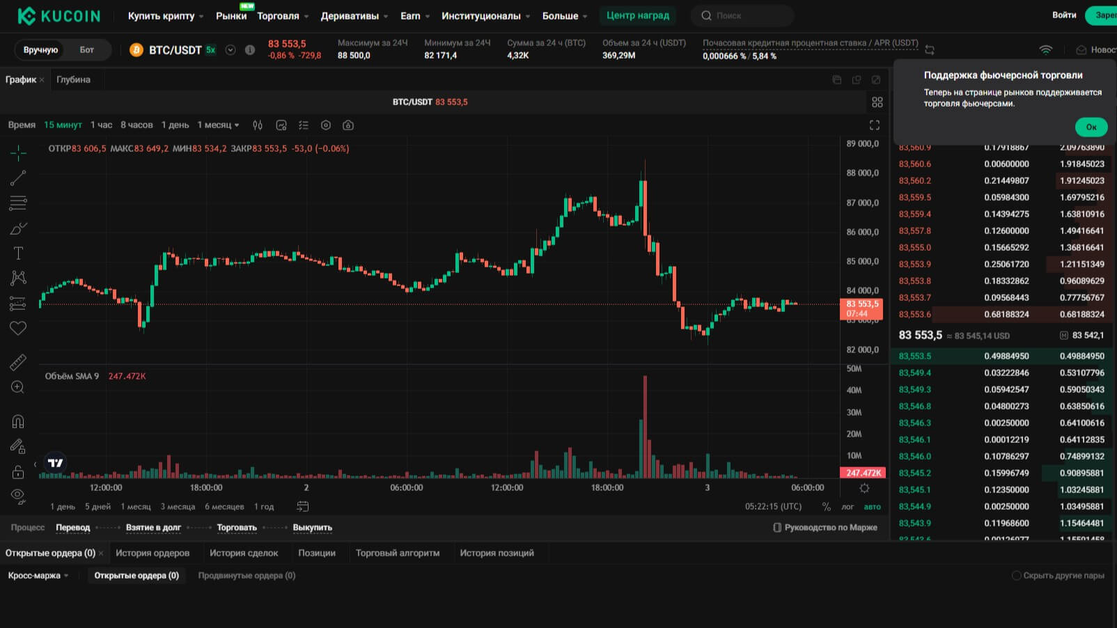 На площадке есть полный набор классических и более сложных коммерческих инструментов для пользователей любого уровня и опыта в криптовалютной сфере.