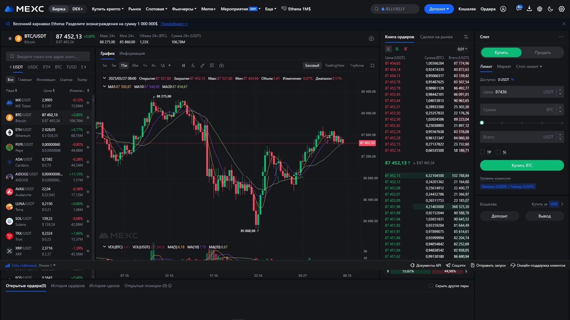 Спотовая торговля на MEXC