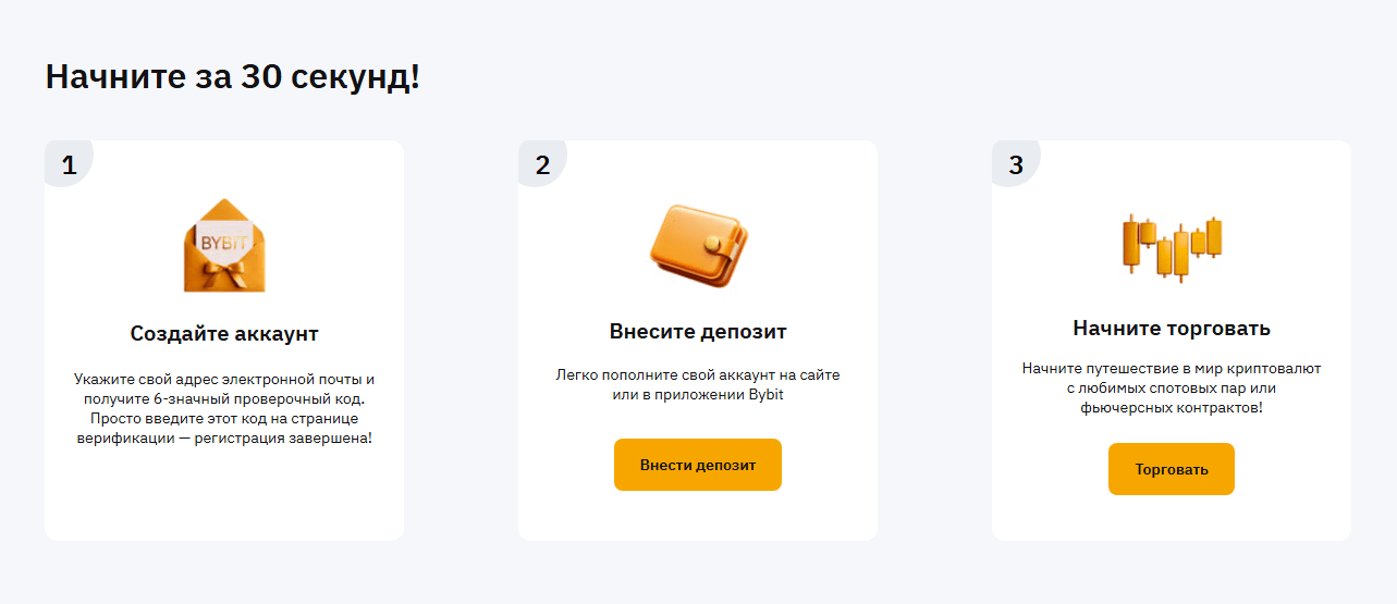 Bybit — деривативная платформа, предоставляющая возможность торговли с высоким уровнем левериджа. Для клиентов здесь есть все, что может потребоваться в обучении основам криптобизнеса, а также росте, развитии и выходе на высокие доходы. Байбит работает в РФ без ограничений и VPN, а счет в P2P можно пополнять при помощи рублей.