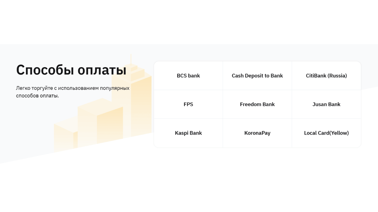 - Binance P2P — развитый рынок криптоиндустрии с высочайшей ликвидностью, однако российские банки и рубли не поддерживает