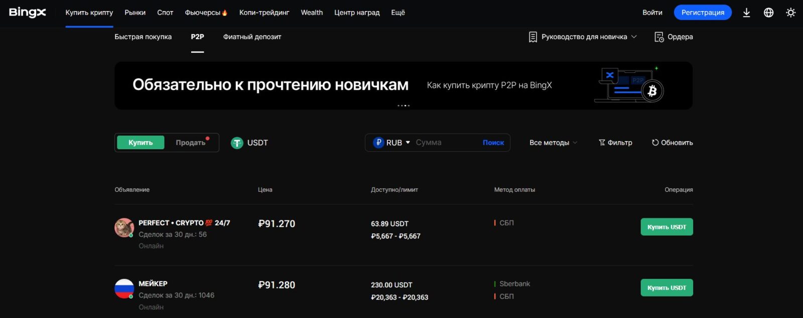 BingX – это криптовалютная платформа с интуитивно понятным сервисом P2P-торговли. Платформа предлагает пользователям возможность выбирать среди множества продавцов, фильтровать объявления по курсу и доступным методам оплаты. Основное внимание уделяется безопасности, поэтому все сделки проходят через эскроу-систему, защищающую обе стороны. BingX также предоставляет аналитику и инструменты мониторинга, чтобы пользователи могли выбирать наиболее выгодные условия. Биржа активно работает над повышением скорости обработки сделок.