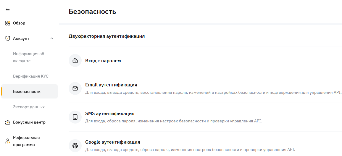 Следующий этап — настройки безопасности. Они находятся в личном кабинете каждого клиента и могут иметь разные названия, но как правило, на платформах с понятным интерфейсом найти их не тяжело.