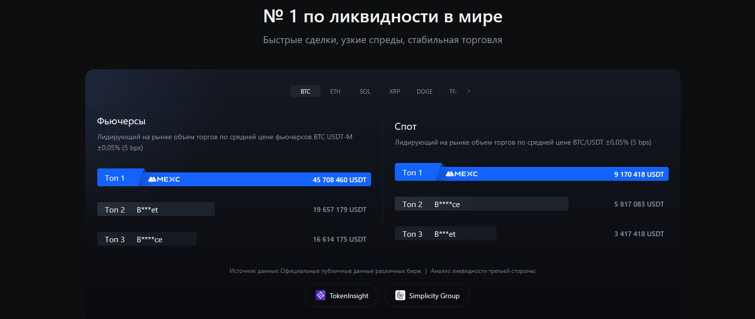На Bybit представлены топовые криптовалюты, как BTC, ETH, XRP, SOL, а также перспективные новые проекты. MEXC поддерживает более 1600 токенов, включая недавно выпущенные и малоизвестные активы. Однако большой выбор не всегда означает высокую ликвидность — многие монеты на MEXC имеют низкий объем торгов.