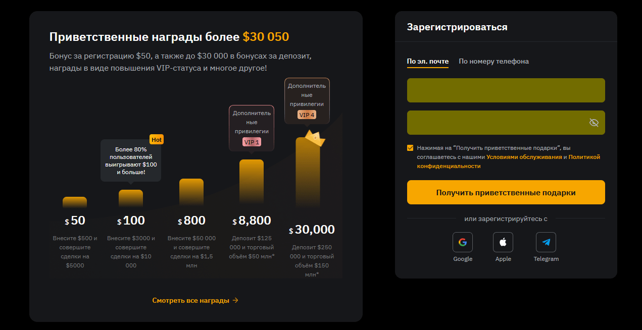 Одним из самых значимых событий можно назвать World Series of Trading (WSOT). Это крупнейший торговый турнир, в котором участвуют трейдеры со всего мира и который предлагает призовые фонды в миллионы долларов. Участники соперничают в различных категориях, таких как спотовая и деривативная торговля. И это не только обеспечивает «плюшки» от платформы победителям, но и дает всем дополнительную мотивацию для дальнейшего совершенствования своих навыков и стратегий. - Торговые и депозитные бонусы