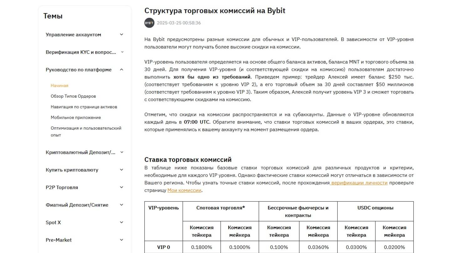 Bybit Сборы и расходы