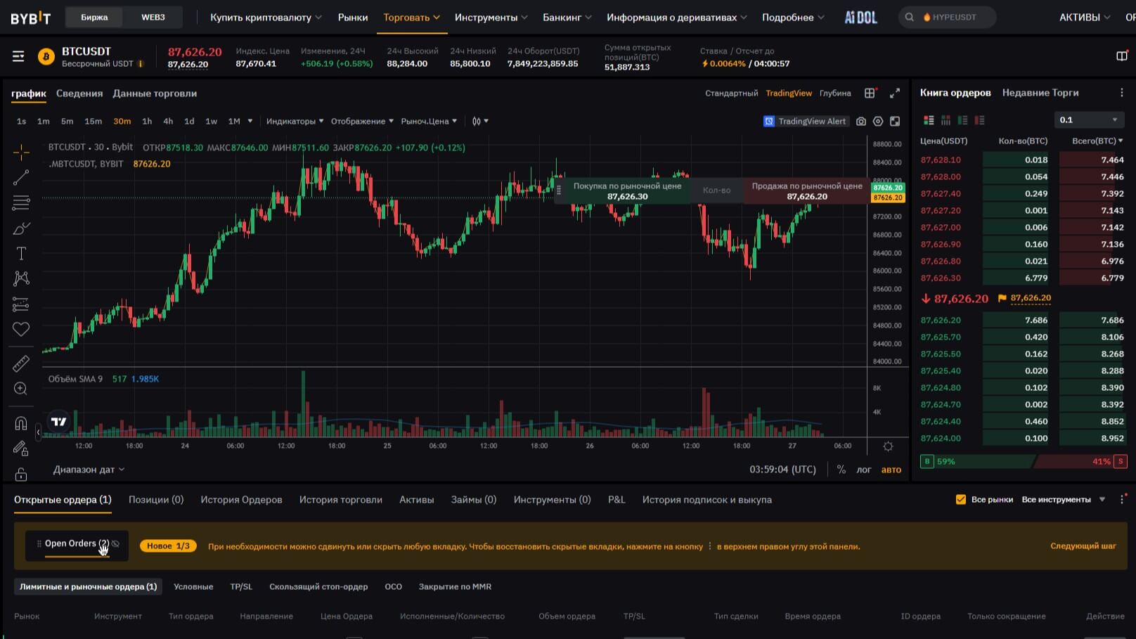 В нише спотовой торговли Bybit, у пользователей есть выбор из множества криптопар, среди которых находятся такие активы, как BTC, ETH и USDT, а также десятки других валют с хорошей ликвидностью и приемлемыми комиссиями. Можно использовать лимитные, рыночные и условные ордера для управления сделками, а для опытных пользователей доступны продвинутые инструменты технического анализа и возможность применения API для алгоритмической торговли.