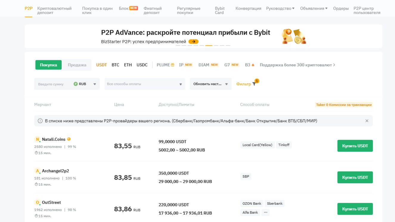 Bybit P2P предлагает обширный ассортимент торговых возможностей, что делает ее подходящей как для начинающих трейдеров, так и для профессионалов, использующих сложные и индивидуальные стратегии.