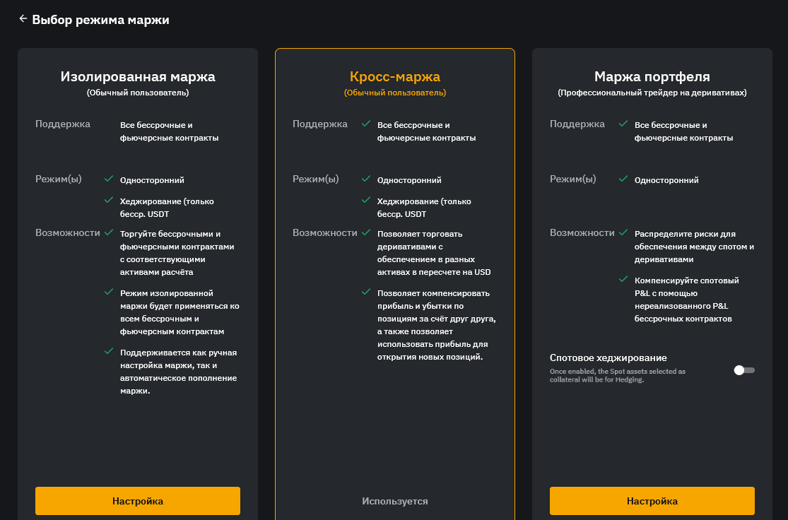 Перед открытием позиции необходимо выбрать режим маржи. Bybit предлагает три варианта: