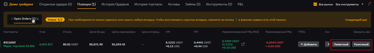 Когда вы решите закрыть позицию, перейдите в раздел «Мои позиции» и выберите нужную позицию. У вас есть два варианта для закрытия:
