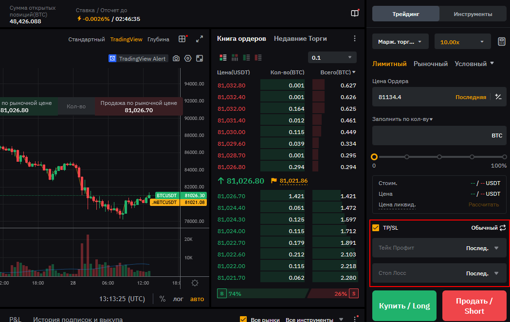 После настройки параметров нажмите кнопку «Купить лонг» для открытия длинной позиции или «Продать шорт» для открытия короткой. В случае лимитного ордера дожидайтесь достижения цены, которую вы установили.