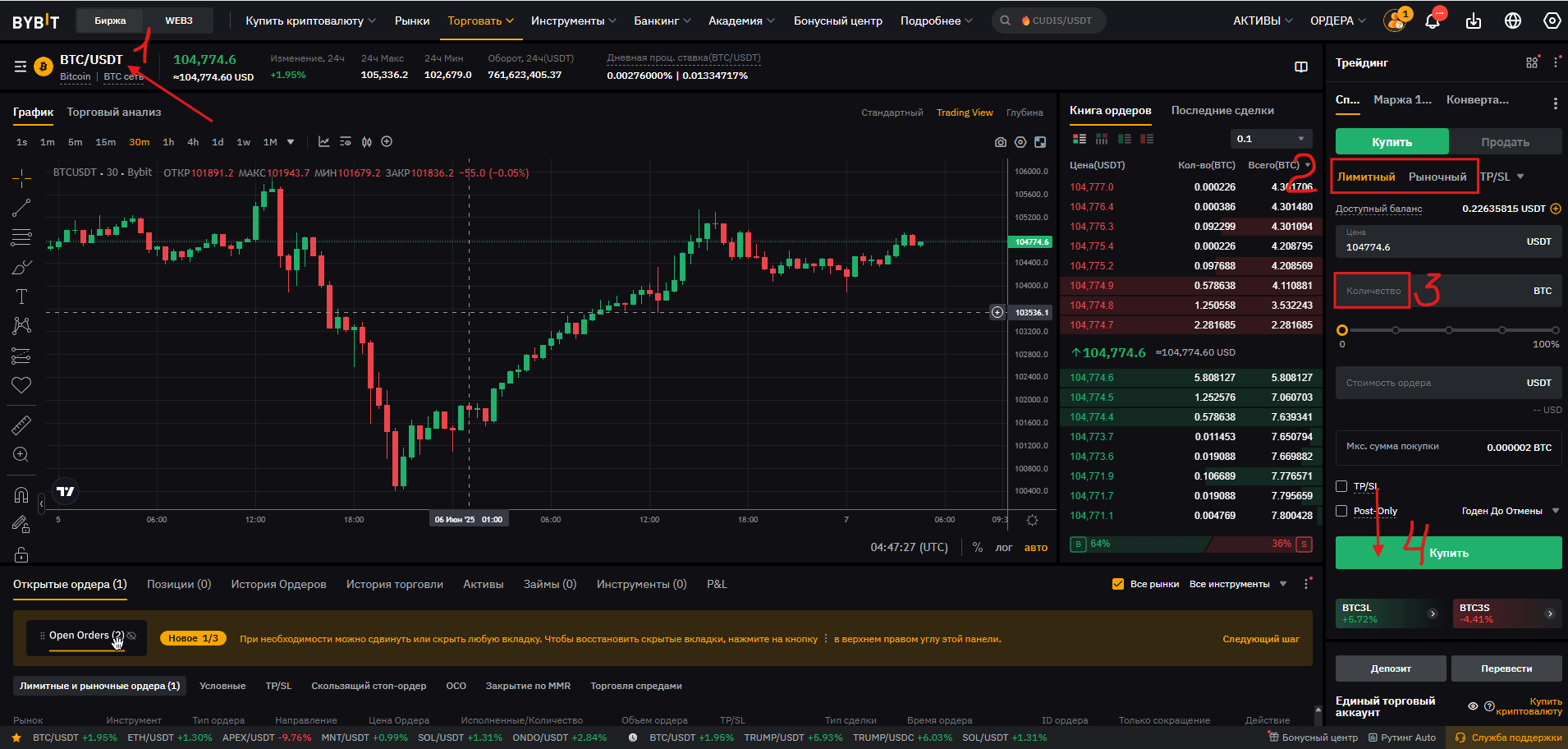 Как купить криптовалюту на бирже Байбит на спотовом рынке