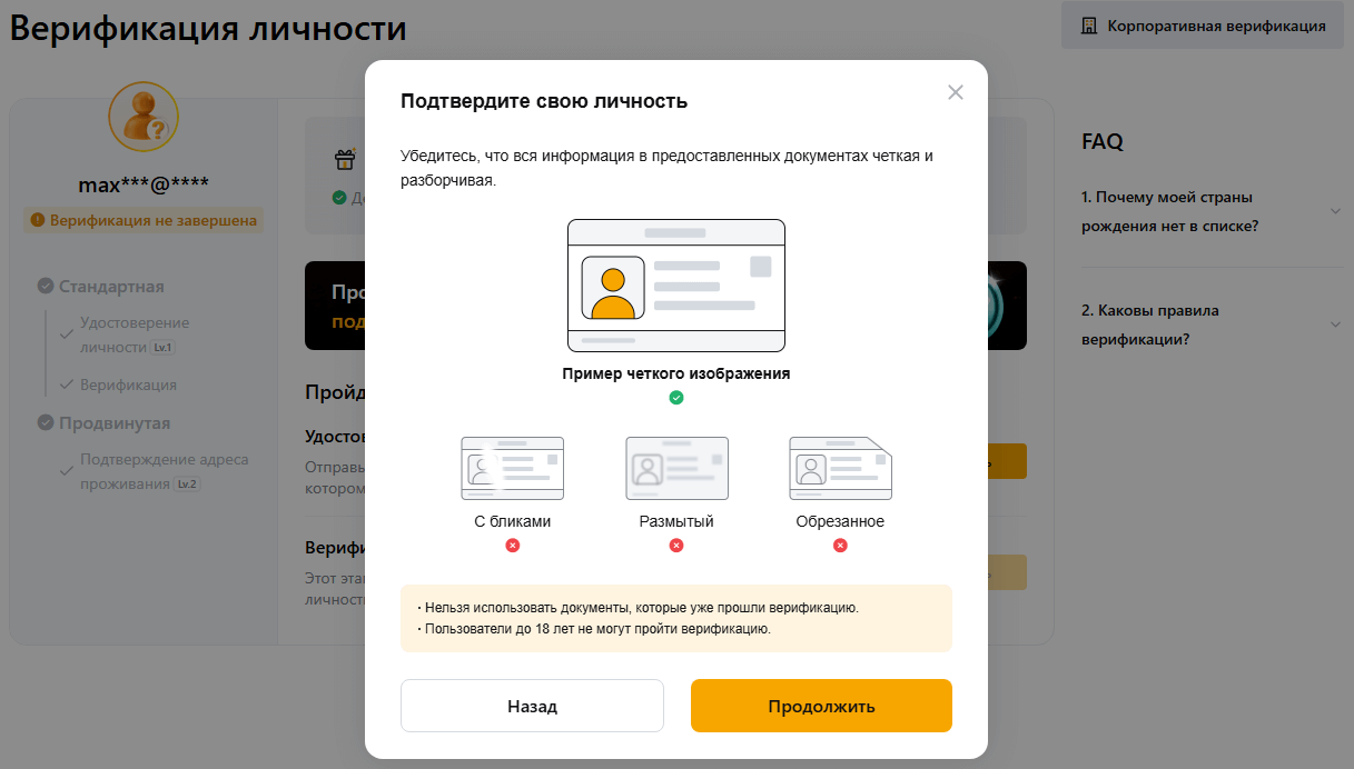 Смешивание данных из разных документов также не поможет пройти верификацию. Например, если в анкете выбрать паспорт, а приложить водительское удостоверение с неполными или несовпадающими данными, это может вызвать вопросы. KYC требует строгого соблюдения информации.