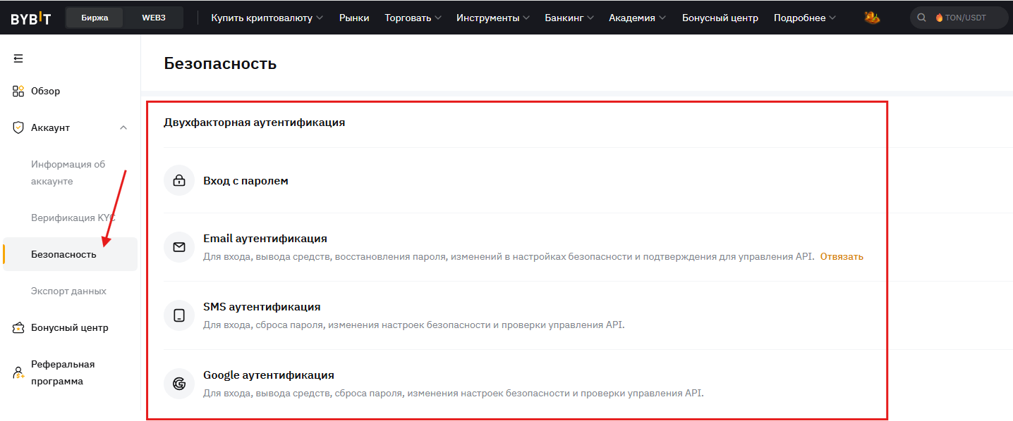 И последнее, что нужно сделать перед тем как начать пользваться p2p — настроить безопасность. Двухфакторная аутентификация, уведомления, подключение антифишинговых кодов и прочие очень полезные функции находятся в настройках аккаунта в личном кабинете.