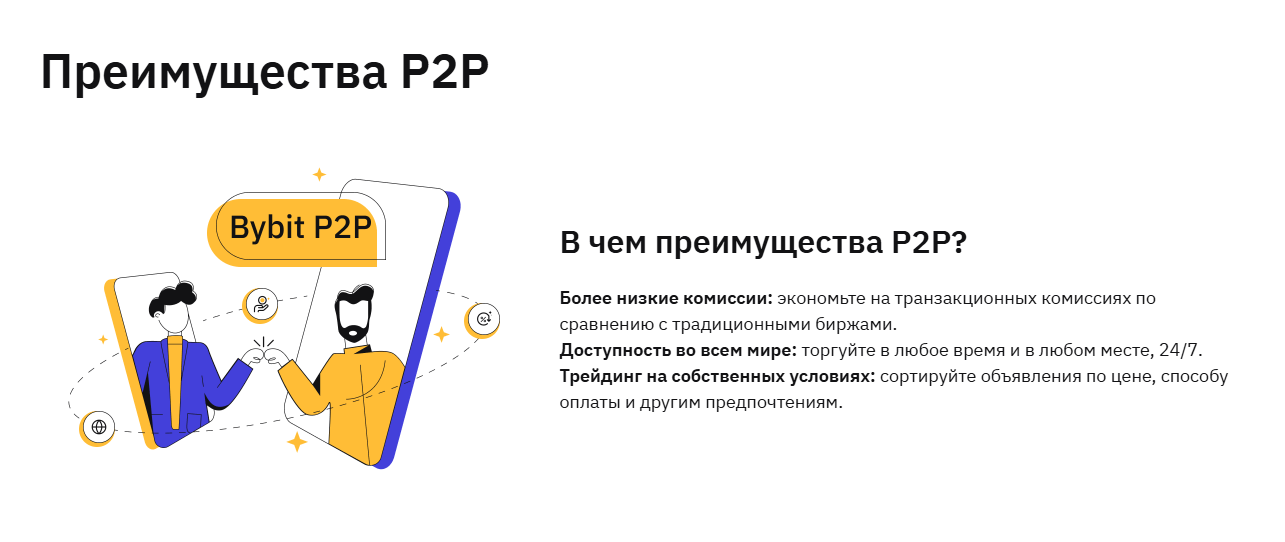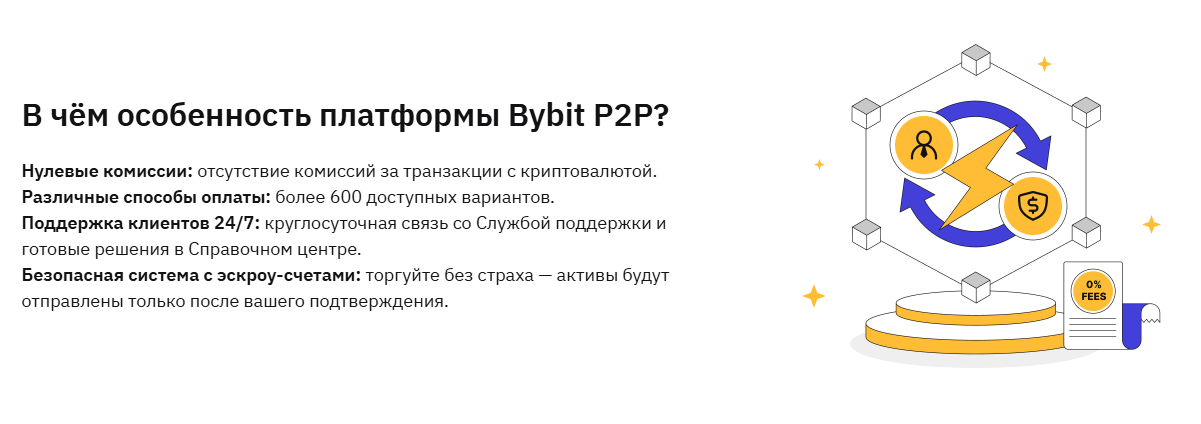 Хотите работать с криптовалютами по своим правилам? Без посредников, без ограничений, ставить свои цены и платить рублем? Добро пожаловать в мир одноранговой торговли на Bybit! Это уникальная возможность получать доход с цифровых валют наравне с ведущими игроками международного криптобизнеса.
