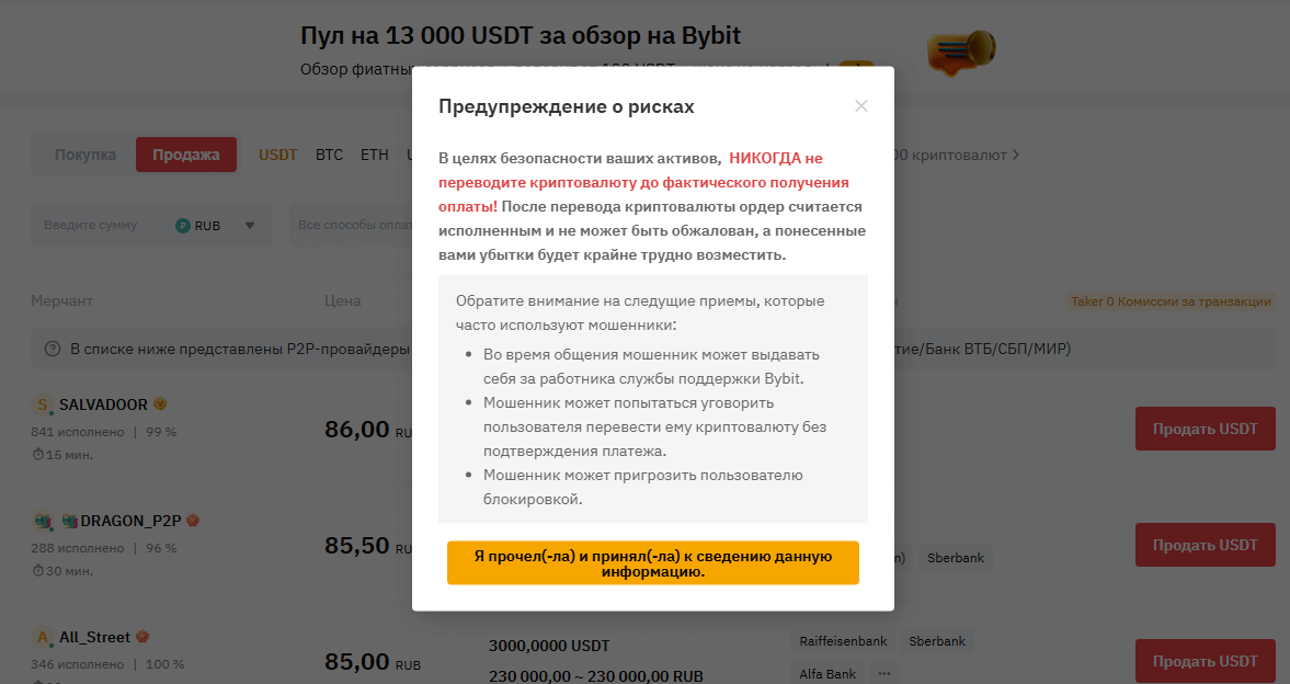 Безопасность сделок P2P на Bybit