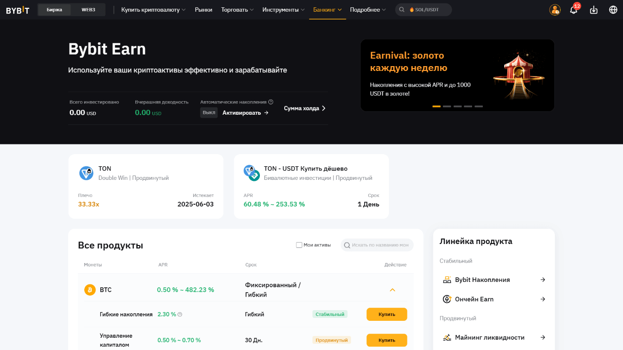 Криптобиржа позволяет получать прибыль не только от трейдинга. Пассивный доход на байбит возможен при совершении разных инвестиционных операций.