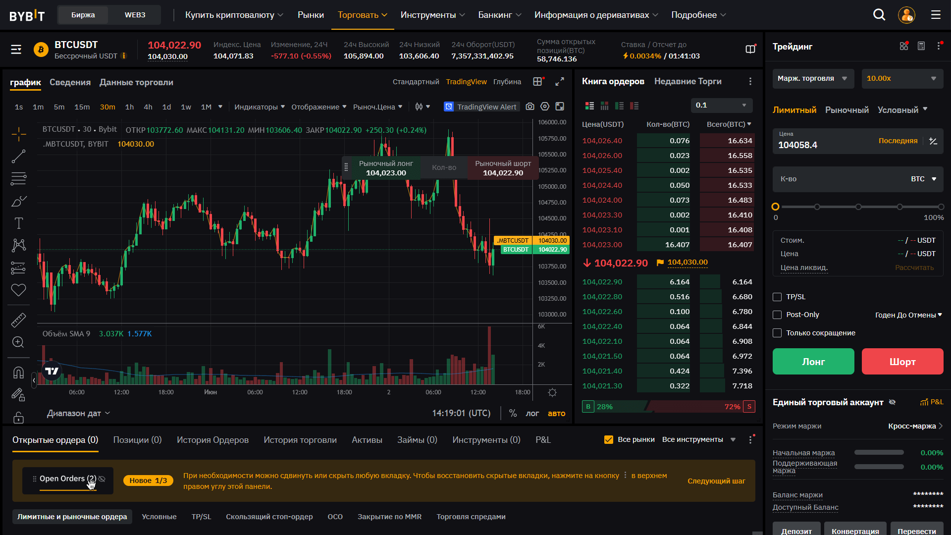 Итак, переходим к основным разделам биржи. Это торговые терминалы bybit, на которых пользователи могут покупать/продавать криптовалюты или альткоины. Рассмотрим основные возможности трейдеров.