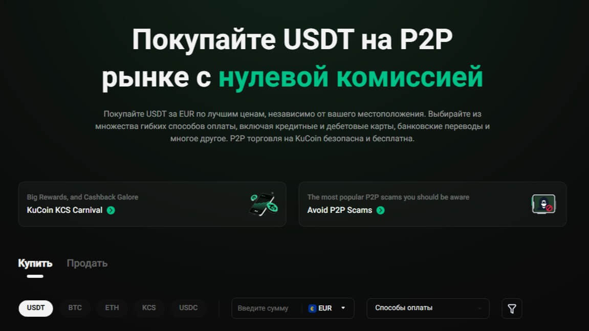 Кроме того, KuCoin предлагает возможность вывода средств через P2P-торговлю, которая позволяет пользователям обменивать свои криптовалюты на фиатные деньги. В этом случае условия сделки могут непосредственно зависеть от соглашения между пользователями. Комиссия здесь может быть как нулевой, так и включать небольшую плату, установленную Партнером по сделке.