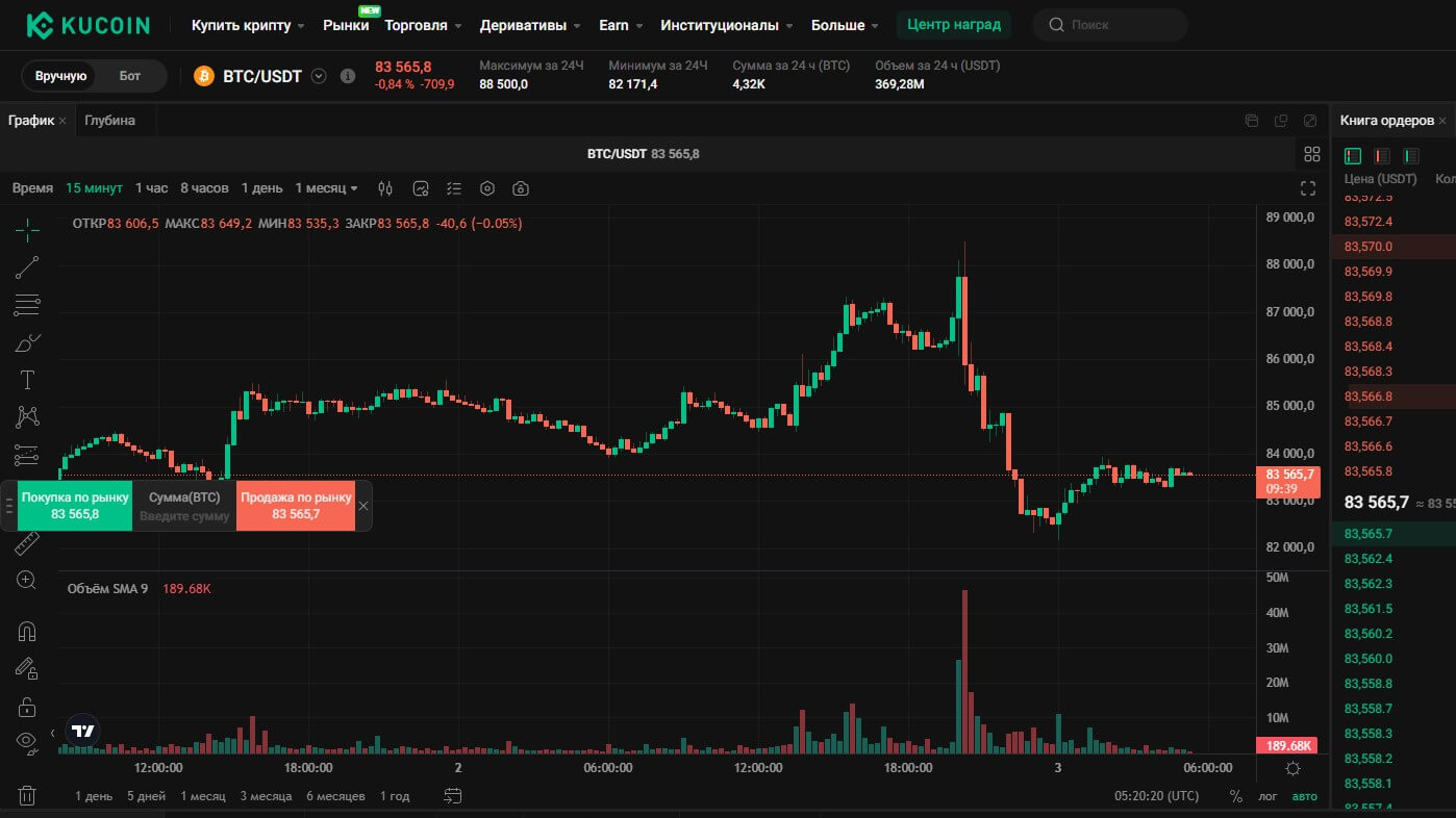 Спот-трейдинг на KuCoin — раздел, в котором можно покупать и продавать криптовалюты непосредственно по текущим рыночным ценам. Наиболее распространенный, можно сказать классический способ торговли, который подходит вообще всем клиентам биржи, независимо от опыта.