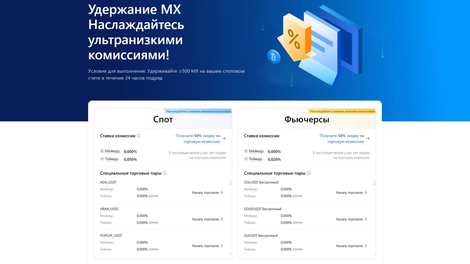 Торговые комиссии MEXC