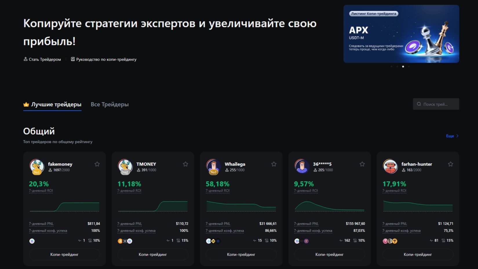 Хотите попробовать работать на бирже, но сомневаетесь в собственных силах? Воспользуйтесь функцией копитрейдинга на MEXC. Это возможность использовать копипаст стратегий опытных трейдеров. Вы можете выбрать подходящего игрока из списка, проанализировать его показатели и подписаться на него.
