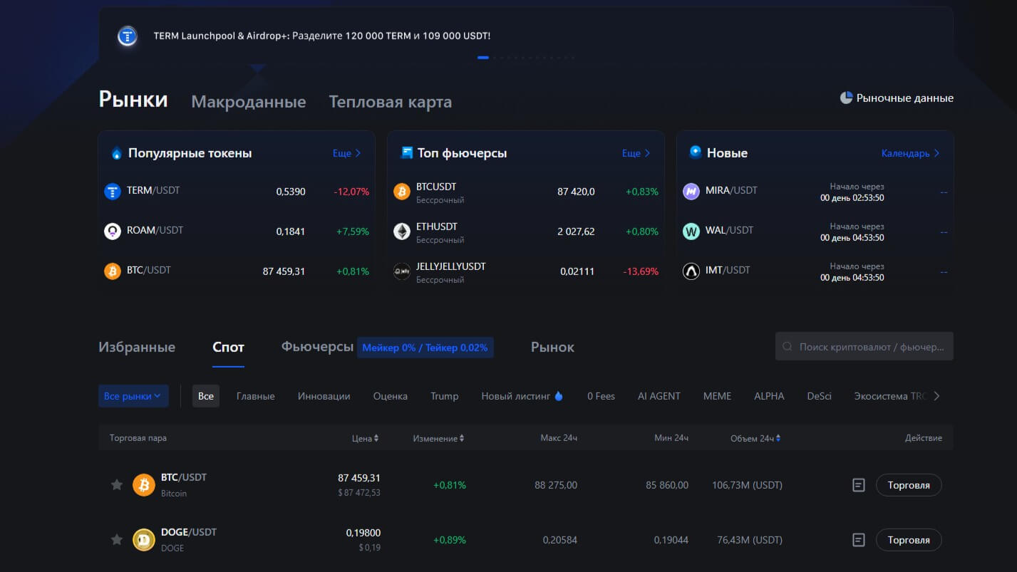MEXC — биржа для тех, кто ищет надежный ресурс с разнообразием торговых вариаций.