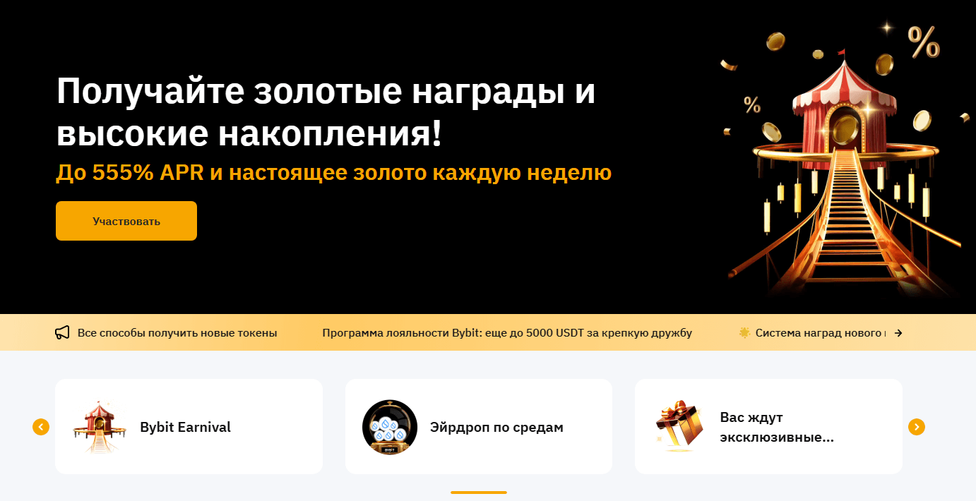 Bybit — деривативная платформа, предоставляющая возможность торговли с высоким уровнем левериджа. Для клиентов здесь есть все, что может потребоваться в обучении основам криптобизнеса, а также росте, развитии и выходе на высокие доходы. Байбит работает в РФ без ограничений и VPN, а счет в P2P можно пополнять при помощи рублей.
