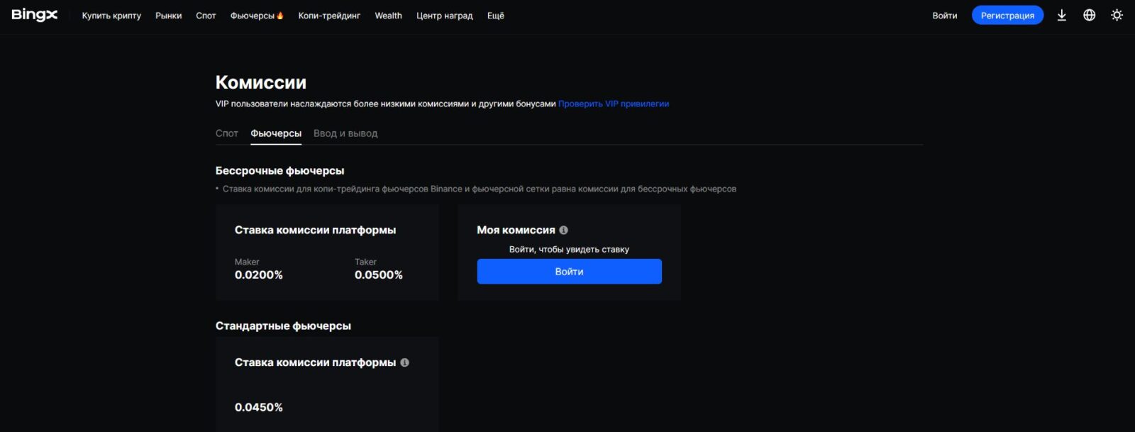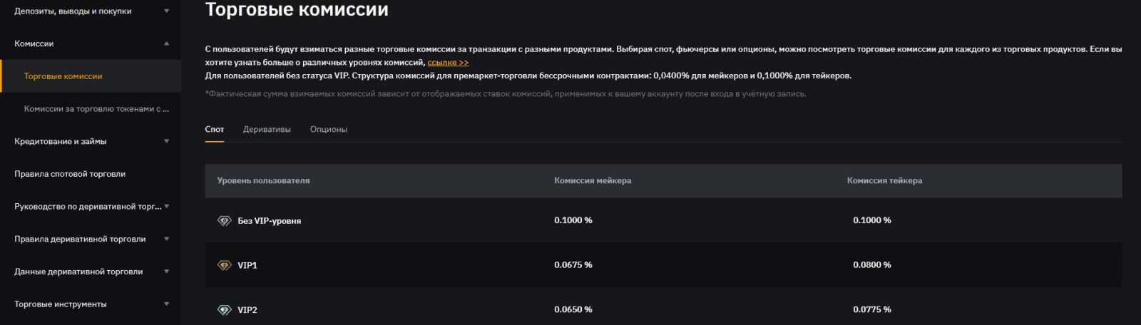 - Фьючерсы: 0,02% мейкер, 0,06% тейкер
