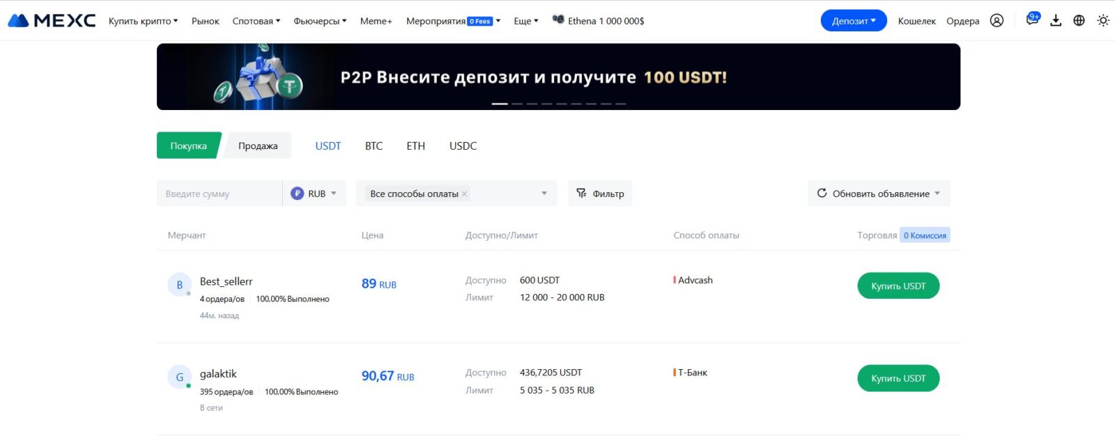 Международная биржа MEXC славится своим высокоскоростным P2P-обменом, делающим сделки максимально удобными для пользователей по всему миру. Платформа предлагает обширный выбор торговых пар и методов оплаты — от банковских переводов до криптовалютных транзакций. Система арбитража в MEXC минимизирует риски при торговле, а самые низкие комиссии и активное развитие инфраструктуры делают P2P-сервис все более привлекательным для трейдеров. Эта платформа вошла в наш топ бирж для жителей России. Смотрите рейтинг лучших криптоплатформ и выбирайте оптимальную для себя.
